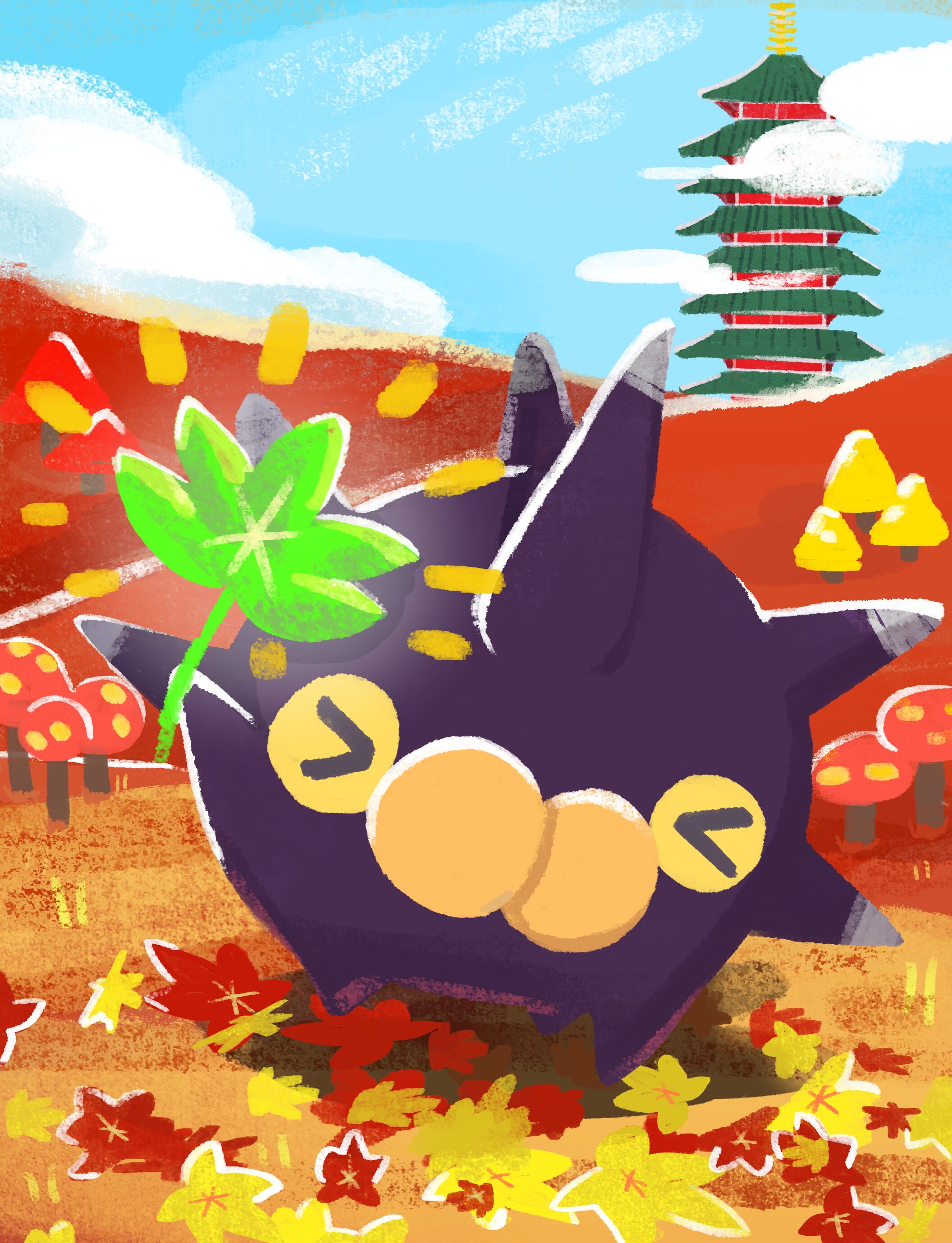 バチンウニが拾ってきた落ち葉の色で当たり期待度を示唆しています。